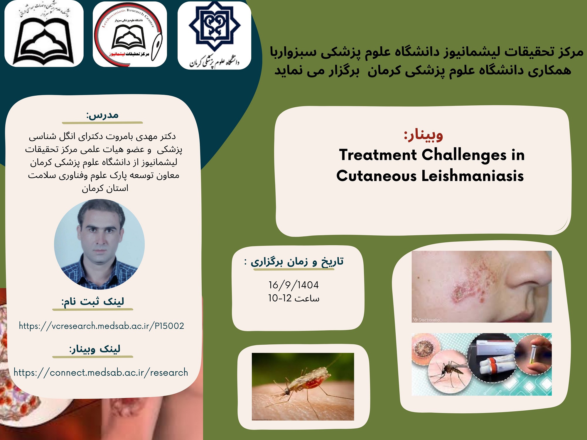وبینار چالش های لیشمانیوز جلدی تاریخ انتشار : 1404/09/13 - 08:51 بازدید : 6 تعداد بازدید : 6 کد خبر : 164796 گروه خبری : گروه های مطالب,shora,arshiv تعداد نظرات : 0